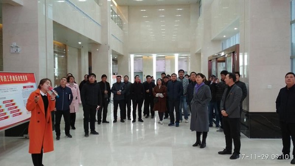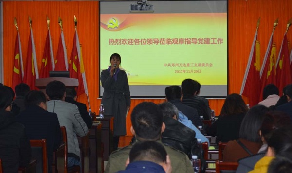 2017 年11 月29 日上午,實(shí)驗(yàn)區(qū)黨工委組織部組織區(qū)機(jī)關(guān)黨工委、各辦事處(IT 社區(qū))黨工委、興港公司黨委和港區(qū)7家非公企業(yè)黨建負(fù)責(zé)同志62 人蒞臨萬達(dá)重工黨支部觀摩指導(dǎo)黨建工作。萬達(dá)重工黨支部副書記于江山、紀(jì)律委員薛如勛、宣傳委員張夢(mèng)珠等人隨行陪同并講解企業(yè)運(yùn)營(yíng)、企業(yè)文化及黨建工作情況。