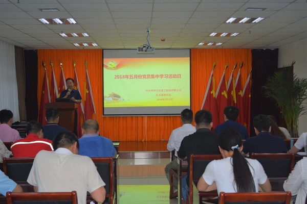 2018年5月15日下午,鄭州萬達(dá)重工股份有限公司黨總支在集團(tuán)綜合樓二樓黨建基地開展了2018年度5月份“黨員集中活動(dòng)日”活動(dòng)。黨總支全體黨員、入黨積極分子、入黨申請人共有40余人參加了此次活動(dòng)。