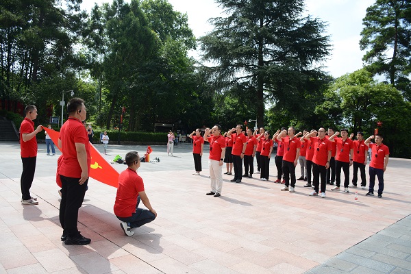 在紅軍山(遵義紅軍山烈士陵園)紀念碑前,全體黨員向革命烈士們敬獻花圈、默哀致敬。面向鮮紅的黨旗,黨總支何書記帶領黨員們高舉右拳,再次重溫入黨誓詞,鏗鏘有力的宣誓聲響徹陵園。在“紅軍墳”前,聆聽了紅三軍團參謀長鄧萍的故事和紅軍菩薩《衛(wèi)生員小紅的故事》,紅軍與群眾魚水情深的故事深深打動了在場的每一個人。大家一邊回顧歷史,一邊聯系當下,紛紛激動地抒發(fā)自己內心涌動的激蕩情懷,并表露出將學習成果轉化為具體行動的決心。
