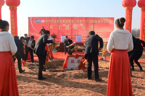 2014年12月2日,在公司二期工程建設(shè)項(xiàng)目工程現(xiàn)場隆重舉行鄭州萬達(dá)管件制造有限公司年產(chǎn)80000噸鋼制管件工程開工奠基儀式。它的開工建設(shè),標(biāo)志著鄭州萬達(dá)的發(fā)展又掀開了嶄新的一頁,又昂首步入了更加廣闊的新天地,必將對公司的發(fā)展產(chǎn)生重大而深遠(yuǎn)的影響。