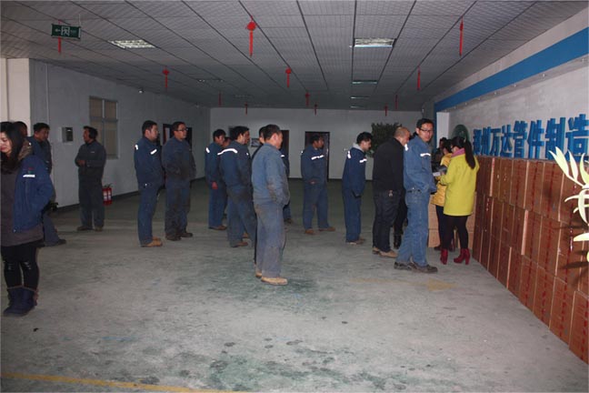 2015年2月4日下午13:00,公司組織的年終福利品發(fā)放工作在行政大廳熱鬧進行。