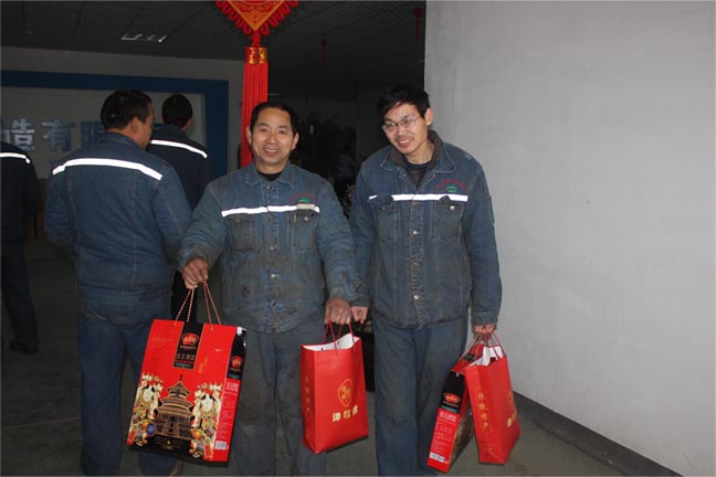 為感謝全體員工一年來的辛勤工作,祝福員工度過一個歡樂喜慶的新年,公司本著,一切以為員工謀福利的原則,為每位員工購置了禮品(若羌大棗、稻花香金玉滿堂)。讓員工把公司溫暖帶回家。