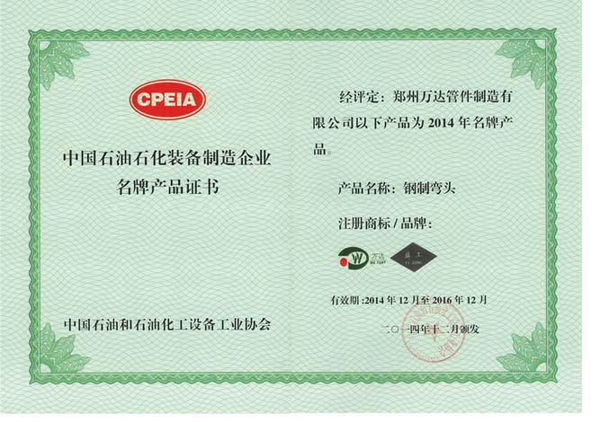 我司“益工”牌“鋼制彎頭”被評為“2014年中國石油石化裝備制造企業(yè)名牌產(chǎn)品”