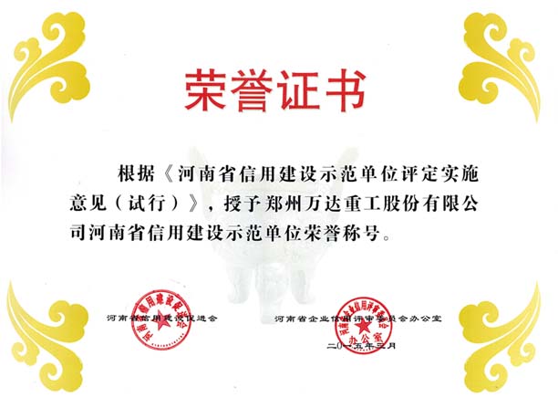 熱烈祝賀鄭州萬達(dá)重工股份有限公司通過了“河南省信用建設(shè)促進(jìn)會(huì)”和“河南省企業(yè)信用評(píng)審委員會(huì)辦公室”共同組織的“河南省信用建設(shè)示范單位”復(fù)審認(rèn)證,被認(rèn)定為“河南省信用建設(shè)示范單位”榮譽(yù)稱號(hào)!