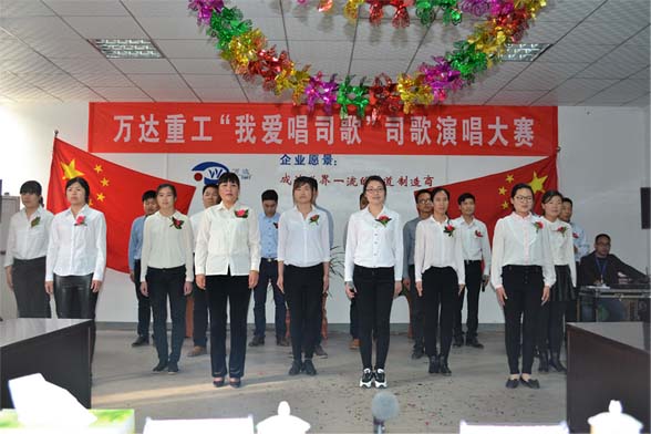 3月30日下午,鄭州萬達重工第一屆“我愛唱司歌”司歌演唱大賽在公司行政區(qū)會議室圓滿舉辦。公司董事長、書記何清出席比賽活動并做總結點評,公司工會主席于江山致開幕詞。工會主席于江山、副總經理馬曉延、財務總監(jiān)劉保國及有關職工代表擔任比賽評委?;顒犹匮S河科技學院音樂學院代小浩老師擔任了比賽專業(yè)評委。