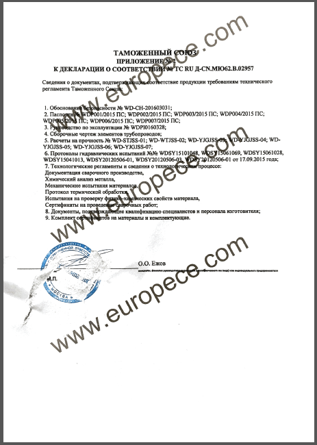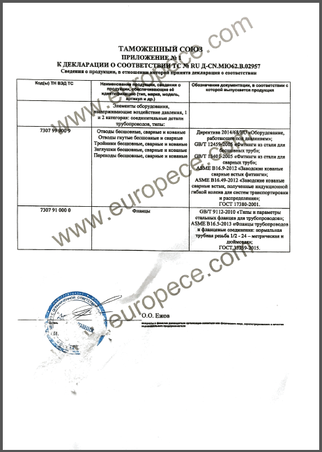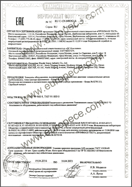 CU-TR認證產(chǎn)品覆蓋萬達重工生產(chǎn)的彎管、法蘭等各類型產(chǎn)品,認證證書的取得是俄白哈對萬達重工產(chǎn)品資料、安全標識、產(chǎn)品性能的肯定,同時驗證了萬達重工的產(chǎn)品質(zhì)量又邁上了一個更高的臺階。近年來,我公司積極開拓海外市場,把擴大國際市場作為重要的發(fā)展戰(zhàn)略,此次CU-TR認證證書的取得,為我司進一步開拓歐洲市場提供了強有力的保證。