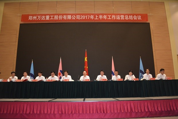 7月12日上午鄭州萬達重工股份有限公司2017年上半年工作運營總結會議在航空港區(qū)中部國際電子商務產(chǎn)業(yè)園隆重圓滿召開,參加會議并在主席臺就座的的領導分別為股份公司董事長、書記何清,股份公司董事、總經(jīng)理張付峰,股份公司監(jiān)事會主席、工會主席于江山,股份公司董事、副總經(jīng)理王立軍,股份公司監(jiān)事、總工程師袁希海,股份公司董秘、副總經(jīng)理馬曉延、股份公司董事、財務總監(jiān)劉保國,鄭州友聯(lián)智能裝備有限公司總經(jīng)理孫夫彥,鄭州萬達科技發(fā)展有限公司總經(jīng)理劉國曉、鄭州萬達邁科國際發(fā)展有限公司總經(jīng)理張明行、鄭州萬達電力工程有限公司總經(jīng)理劉偉。