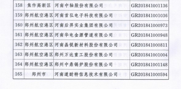 喜訊:鄭州萬達重工股份有限公司被認定為河南2018年度高新技術(shù)企業(yè)