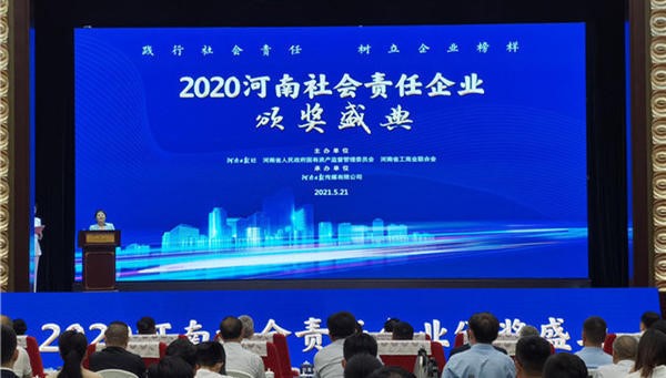 2021年5月21日下午,由河南日報社、河南省國資委、河南省工商業(yè)聯合會聯合主辦,河南日報傳媒有限公司承辦的“2020河南社會責任企業(yè)推選活動頒獎典禮”在鄭州黃河迎賓館隆重舉行。