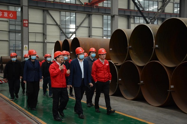 曾部長一行先后深入檢驗中心、堆焊智能制造車間、物流倉儲車間、彎制車間、機加工等車間進行了參觀。在檢驗中心,何董重點對公司省級技術(shù)研究中心的建設(shè)運行、CNAS實驗室建設(shè)、知識產(chǎn)權(quán)獲得等情況等進了詳細介紹。調(diào)研組一行對公司國家級技術(shù)中心創(chuàng)建規(guī)劃表示肯定。