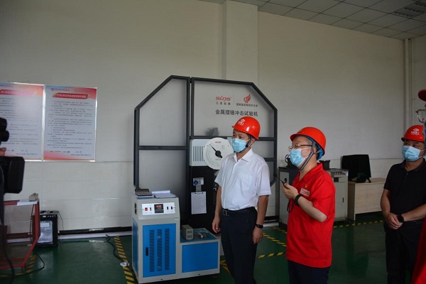 高義一行首先參觀了萬達重工技術中心(CNAS實驗室),股份公司董事長、書記何清就實驗室的高端檢驗檢測設備、檢測能力及產(chǎn)品研發(fā)能力、專利數(shù)量、國家標準、國際標準的參編情況等進行了匯報。