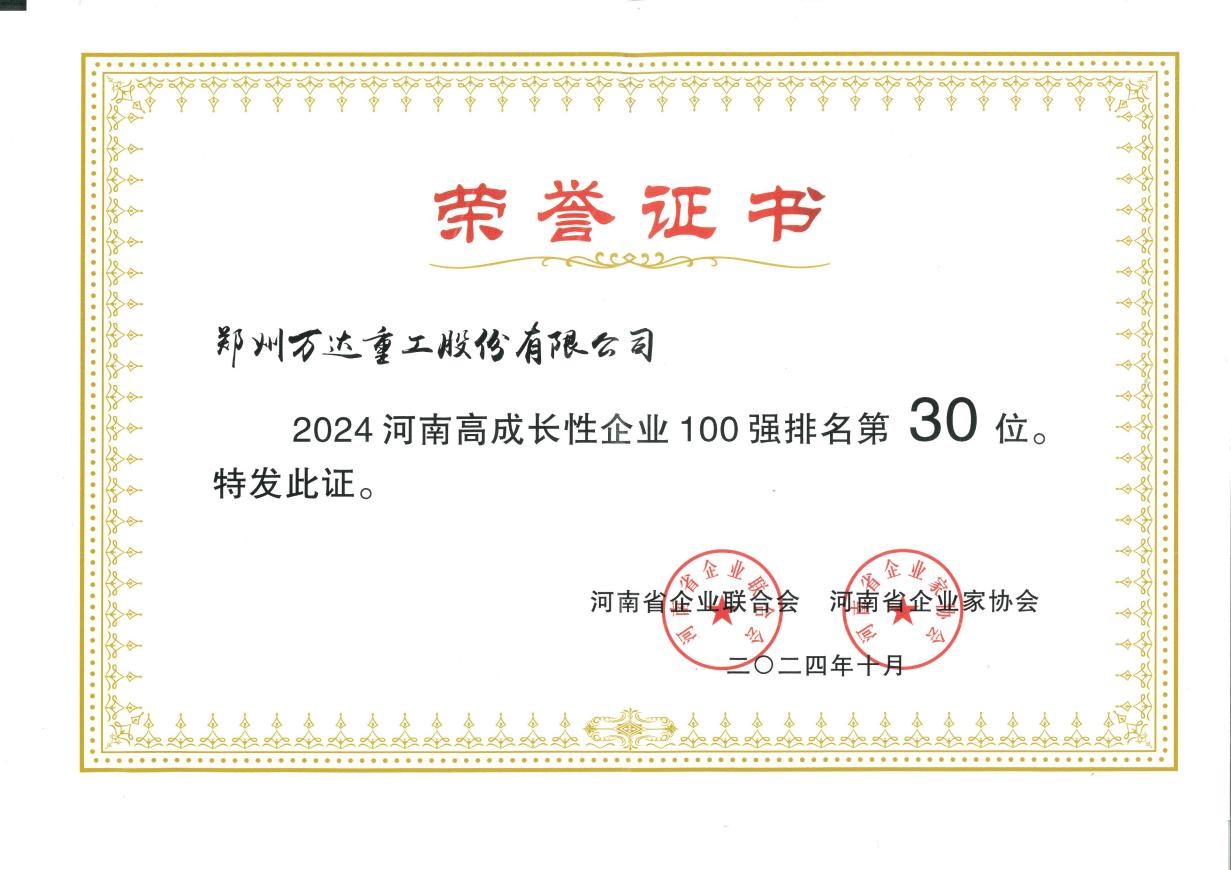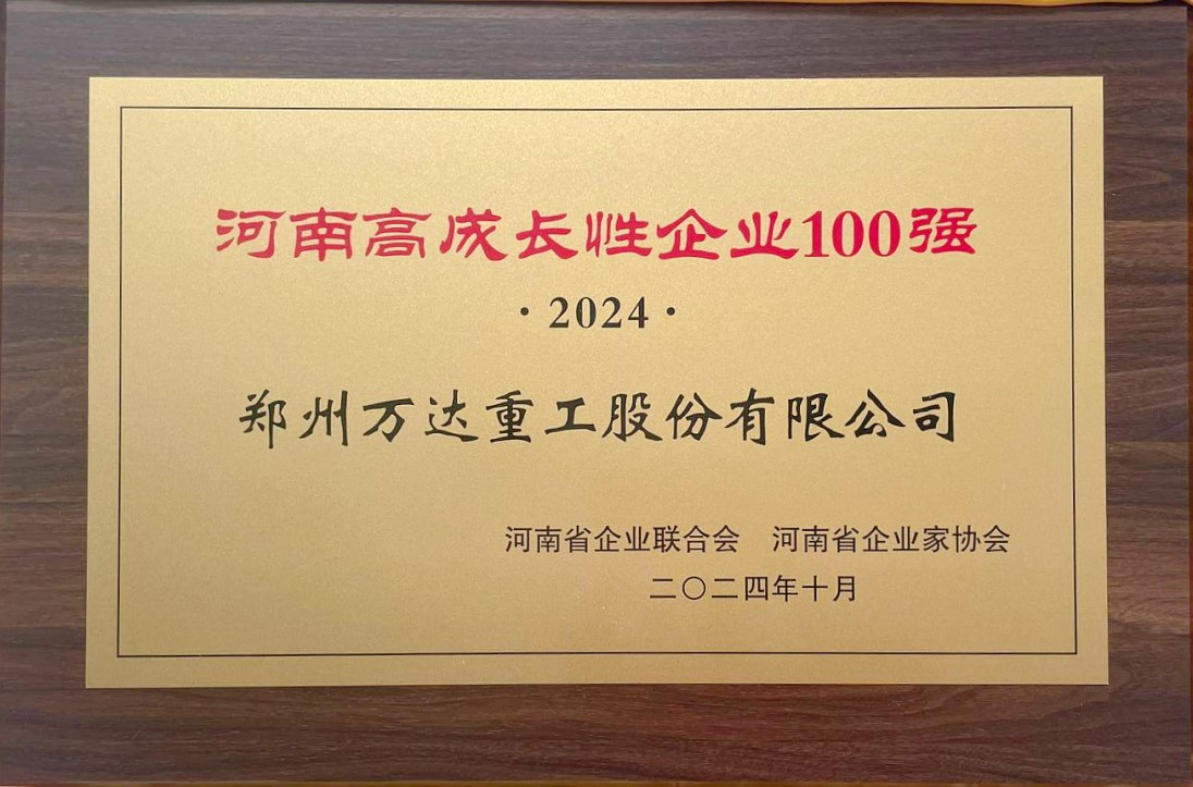 熱烈祝賀鄭州萬達(dá)重工股份有限公司榮獲“2024河南省高成長性100強(qiáng)企業(yè)”