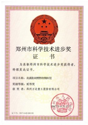 鄭州萬達重工股份有限公司榮獲2017年鄭州市科學(xué)技術(shù)進步獎和專利獎