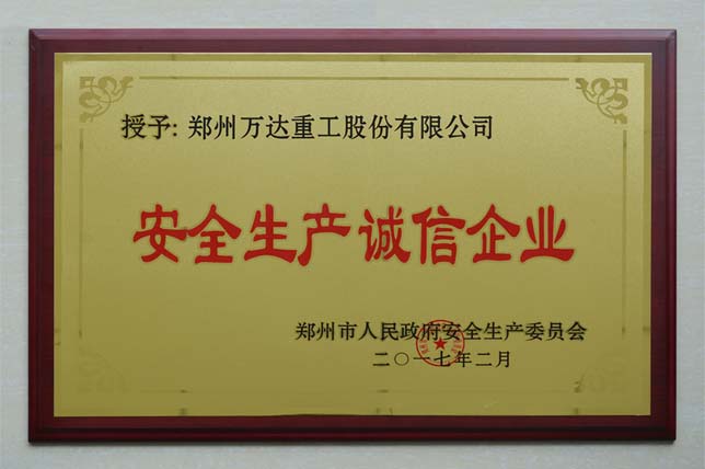 熱烈祝賀鄭州萬達重工股份有限公司榮獲鄭州市安全生產誠信企業(yè)