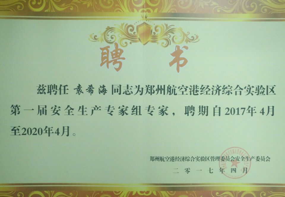 熱烈祝賀鄭州萬達重工股份有限公司總工程師袁希海同志成為第一屆鄭州航空港 經濟綜合實驗